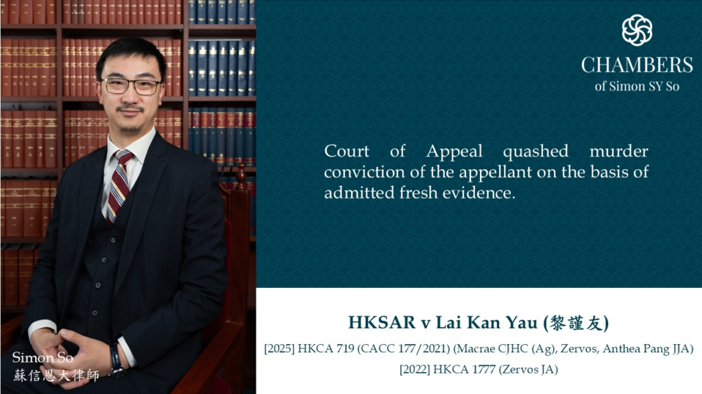 Simon So appeared as a led-junior with Prof Simon N.M. Young for the Appellant both in obtaining leave to appeal before Hon Zervos JA (leave judgment at [2022] HKCA 1777: https://lnkd.in/gHcwT9u6) and the Full Court before Hon Macrae VP, Zervos, and Anthea Pang JJA (judgment before Full Court at [2025] HKCA 719: https://lnkd.in/gJmeHEnA).
